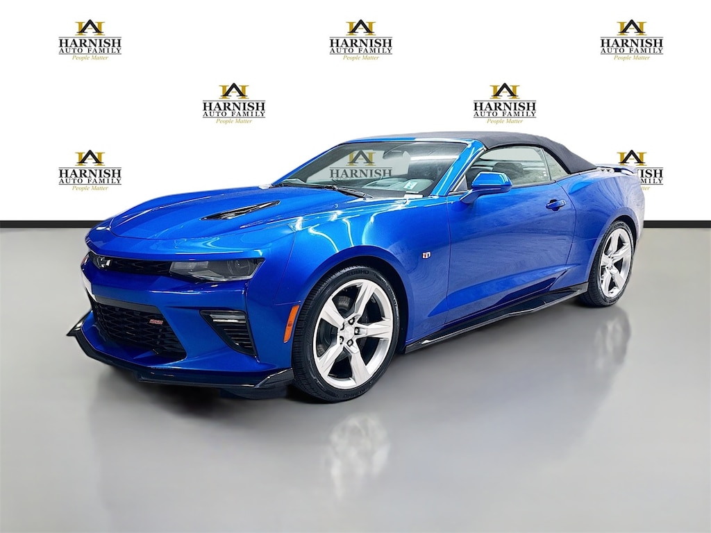 Turn heads in this 2016 Chevrolet Camaro 2SS Convertible, finished in striking Hyper Blue Metallic with a Ceramic White leather interior. This rear-wheel drive muscle car features a 6.2L V8 engine mated to an 8-speed automatic transmission and shows just 66,159 miles. Fully loaded with high-end tech and performance options, this is top-tier open-air performance. Stock #EV8299A.