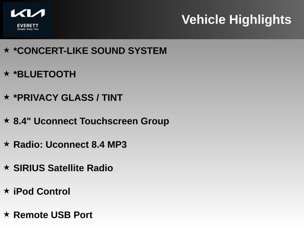- Wireless phone connectivity: Uconnect w/Bluetooth