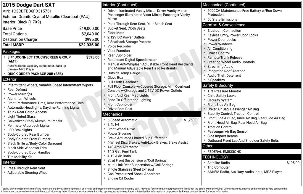 2015 Dodge Dart 2.4L I4 PZEV MultiAir SXT Granite Crystal Metallic Clearcoat
