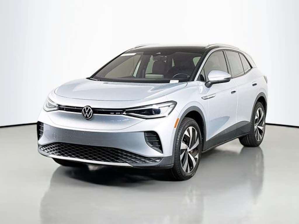 Volkswagen ID.4 Pro S 4D Sport Utility Electric Motor AWD ADAPTIVE CRUISE CONTROL, ALLOY WHEELS, ALL-WHEEL DRIVE, APPLE CARPLAY/ ANDRIOD AUTO, AUDIO PACKAGE, BACKUP CAMERA, BLIND SPOT MONITORING, CLIMATE PACKAGE, HEAT PACKAGE, HEATED SEATS, KEYLESS ENTRY, LEATHER SEATS, NAVIGATION SYSTEM, POWER MIRROR PACKAGE, POWER PACKAGE, PREMIUM SOUND PACKAGE, REMOTE START, SAFTEY PACKAGE, SECURITY PACKAGE, MOONROOF/SUNROOF, TECHNOLOGY PACKAGE, LED HEADLIGHTS, PARKING SENSORS / PARK ASSIST, ID.4 Pro S, 4D Sport Utility, Electric Motor, Single-Speed Automatic, AWD, Scale Silver Metallic/Black Roof, Galaxy Black w/Perforated V-Tex Leatherette Seating Surfaces.